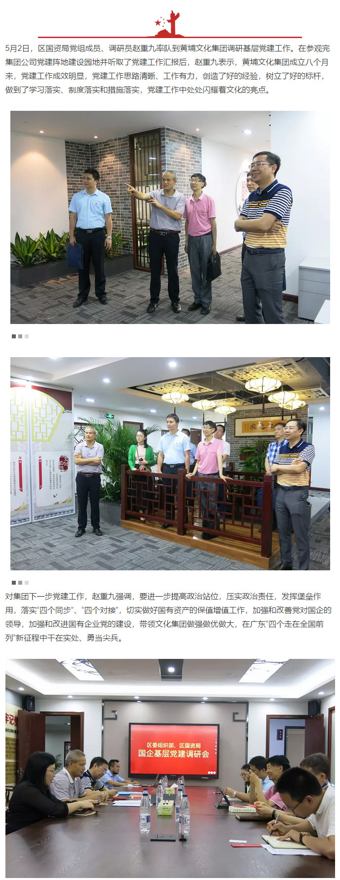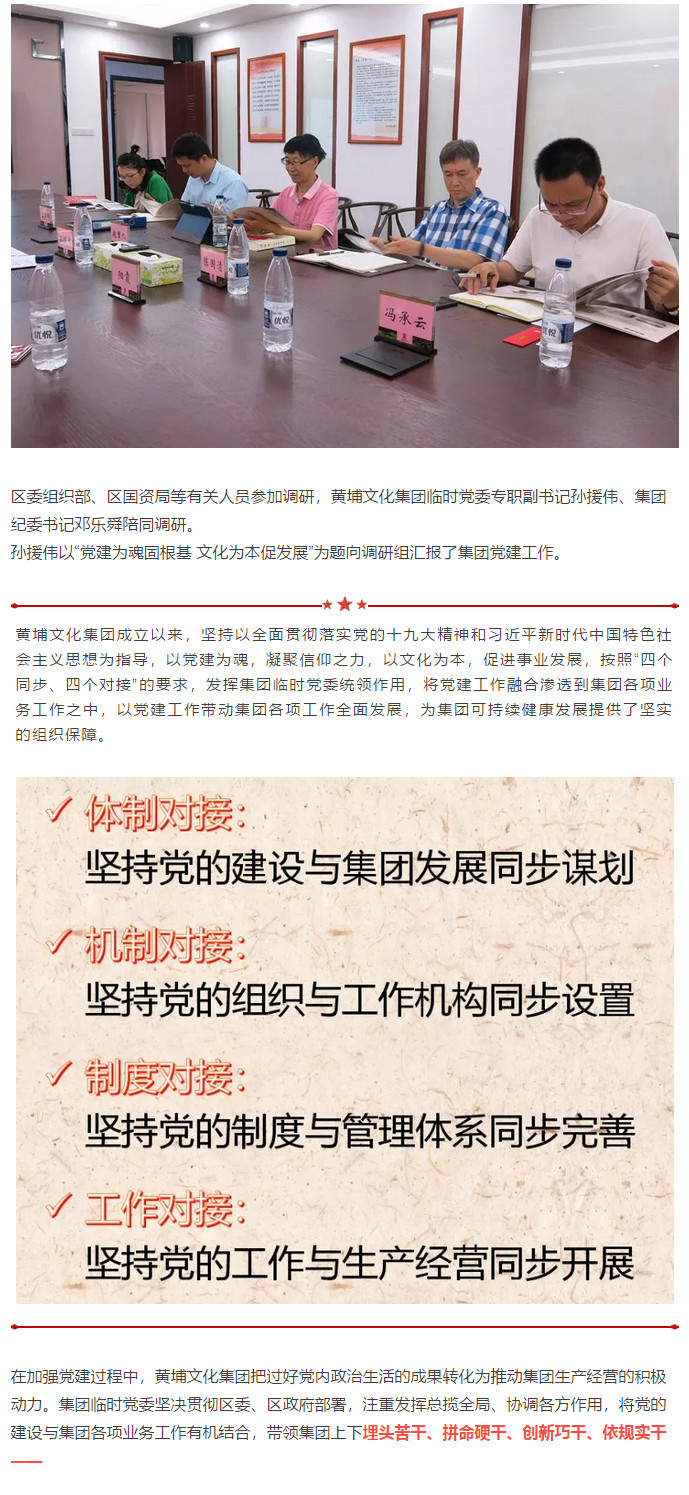 抓好党建也是释放国企生产力 ——区委组织部、区国资局调研黄埔文化集团党建工作