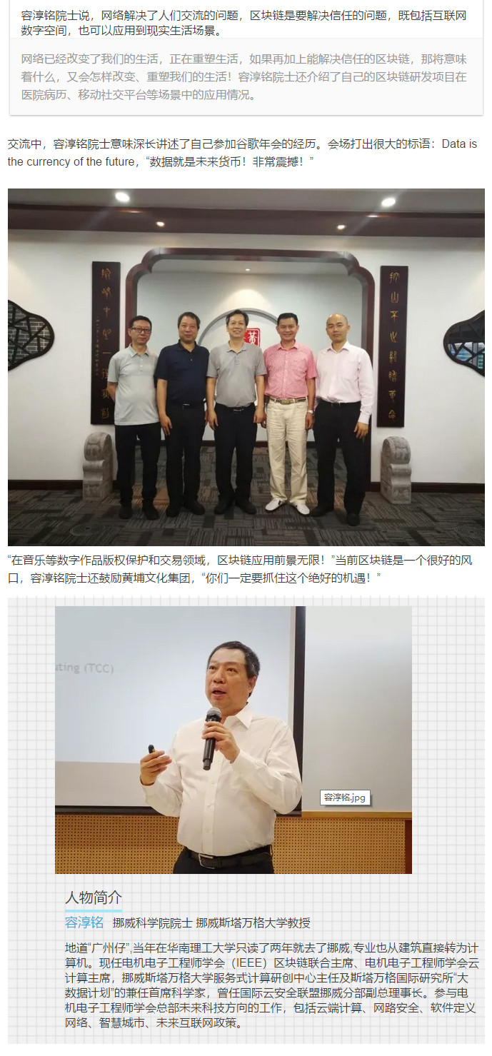 容淳铭院士来访:文化上“链”大有可为!黄埔文化春天,迎来区块链云!